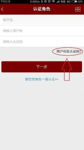 4、在此界面输入您的游戏用户ID及认证码,可点击“用户ID及认证码?”查看游戏中用户ID的位置。