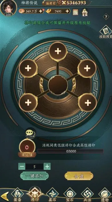 7.置入五枚将印可进行高级合成,消耗锁定石可升级已有技能与属性